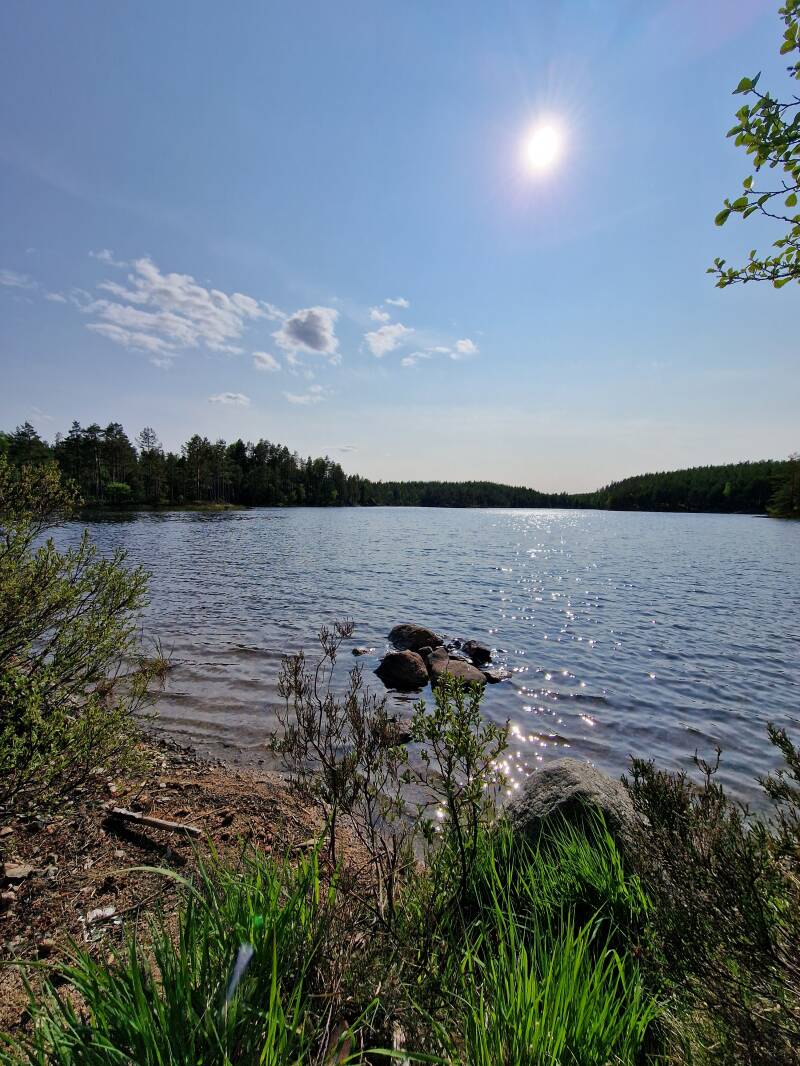 Onze volgende stop is Ivan's Junkyard Car Cemetry. Een autokerkhof op de grens van Zweden en Noorwegen. We stellen de navigatie in om via Årjäng te rijden, zodat we na het autokerkhof pas richting de grens van Noorwegen gaan. Allebei merken we dat het vele rijden over minder leuke wegen van de afgelopen dagen zijn tol eist. Steef is er wel een beetje klaar mee en ik ben volledig overprikkeld waardoor er ook bij mij niks anders meer uit komt dan commentaar op zijn rijstijl. Om dit te doorbreken stoppen we voor een bakkie koffie op een prachtig plekje. Even met de billen op de grond genieten van de stilte en het in de zon schitterende water.