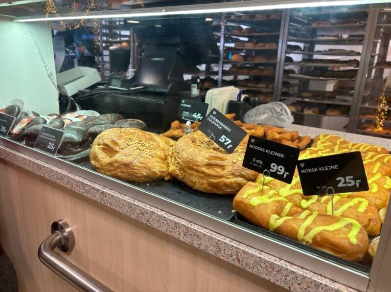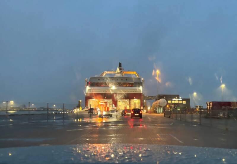 Dag 2. Na een prima nacht in het huisje op de camping proppen we in de regen onze spullen weer in de auto's en rijden we om 7.30 uur naar KonditorBager Hirtshals, de plaatselijke bakkerij. We kopen werkelijk waar overheerlijke broodjes en rijden dan door naar de ferry.