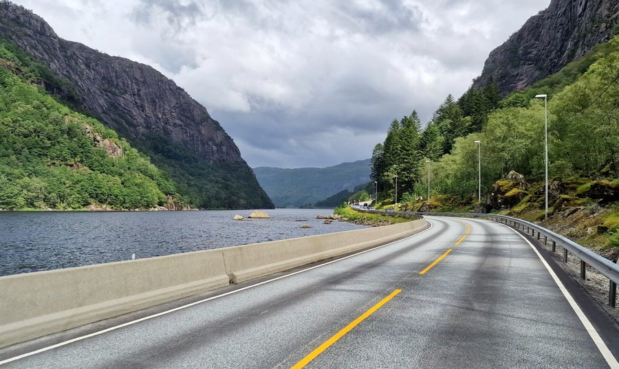Wanneer we gaan slapen schudt de camper regelmatig heen en weer. Is het niet door de wind, dan is het door het langsrazende verkeer. We staan langs zo ongeveer de drukste weg van Noorwegen en dat zullen we weten... Na een voor mij verschrikkelijke nacht, zoeken we daarom eerst een plekje om rustig te kunnen ontbijten.