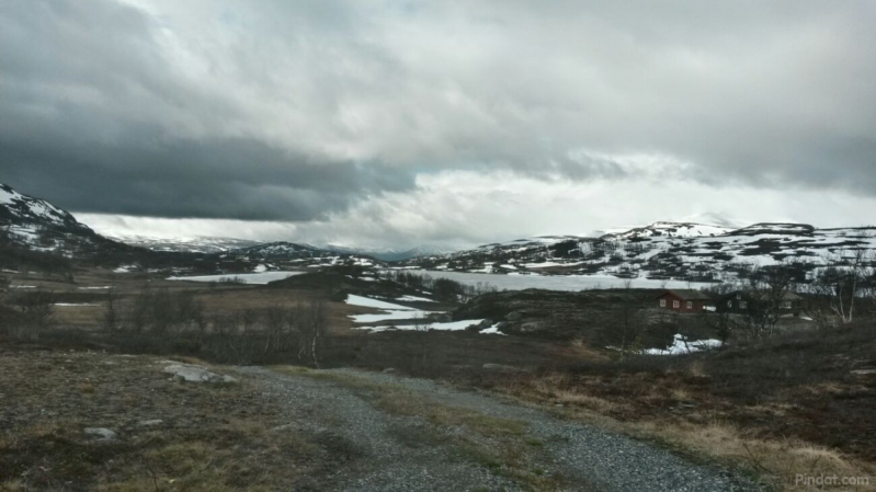 Na wat foto's te hebben gemaakt zijn we aan de afdaling begonnen. Aan het einde kwamen we op weg 70 uit richting Gjøra. Ook dit was weer een fabelachtige weg om te rijden. Enorm diepe afgronden en een prachtig uitzicht tussen de bergen door. Noorwegen op zijn best wat mij betreft!